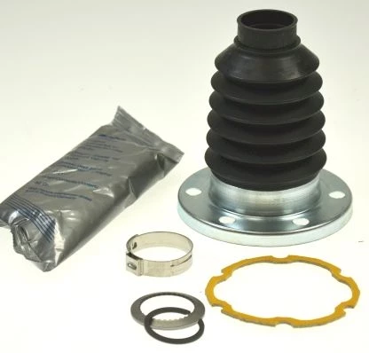 A bellow kit for a drive shaft, also known as a CV boot kit, is a set of components used to replace the protective boot covering the CV joint. It typically includes the bellow (boot), grease, clamps, and sometimes additional hardware such as circlips or retaining rings. The kit is designed to protect the joint and maintain proper lubrication.