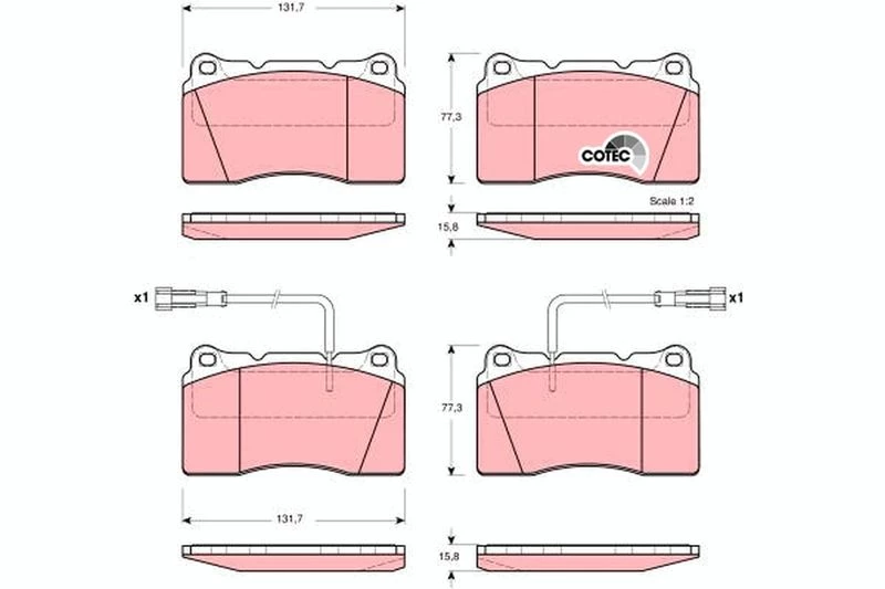 Key specifications include pad dimensions (length, width, thickness), friction material type (organic, semi-metallic, or ceramic), operating temperature range, and compatibility with the brake caliper system. The minimum thickness is critical, as pads should typically be replaced when friction material drops below around 2–3 mm depending on manufacturer specifications
